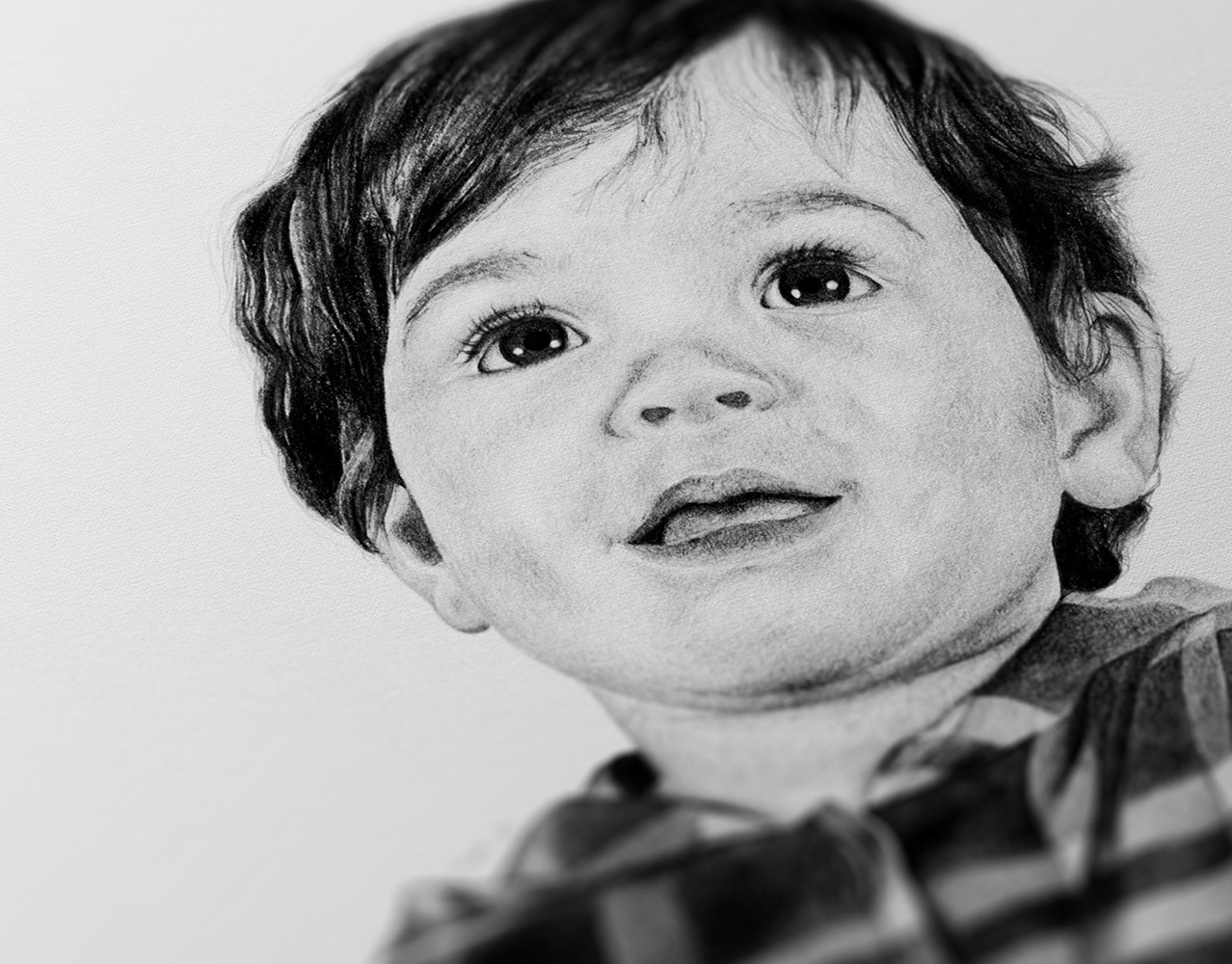 Detailed black and white portrait illustrations of brother and sister on A4-size paper using pencils as main medium.