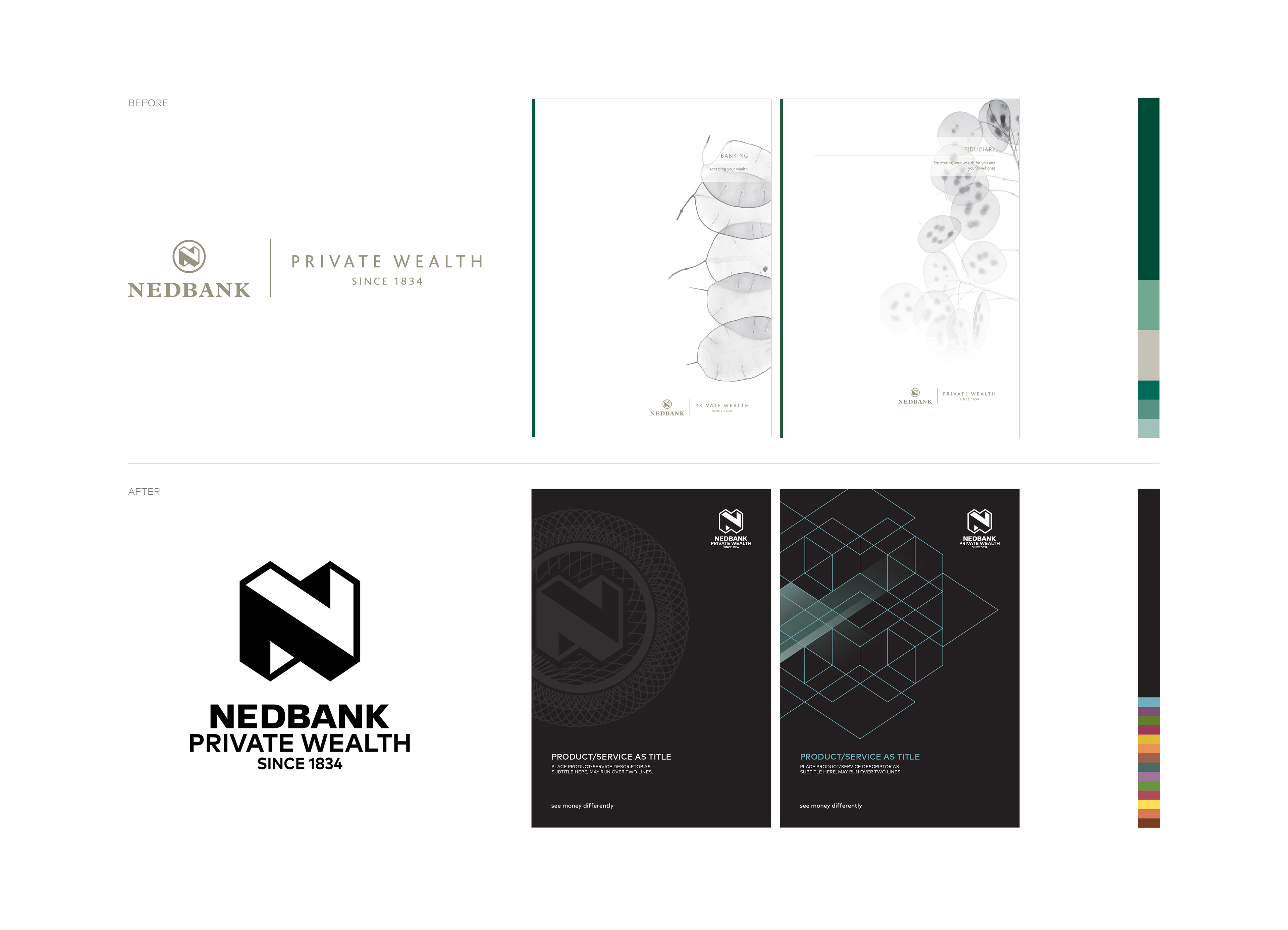Building on Nedbank mother brands base, we created a bespoke visual language for Nedbank Private Wealth.